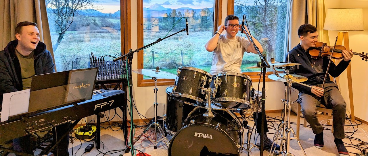 Tàrnach are a Scottish cèilidh band who blend traditional melodies with a modern, energetic sound. We provide a three-piece lineup of experienced professional musicians, and full cèilidh calling so that everyone can enjoy the dances. Whether you are celebrating a wedding or hosting a party, a night of cèilidh dancing courtesy of Tàrnach is the perfect way to bring people together!